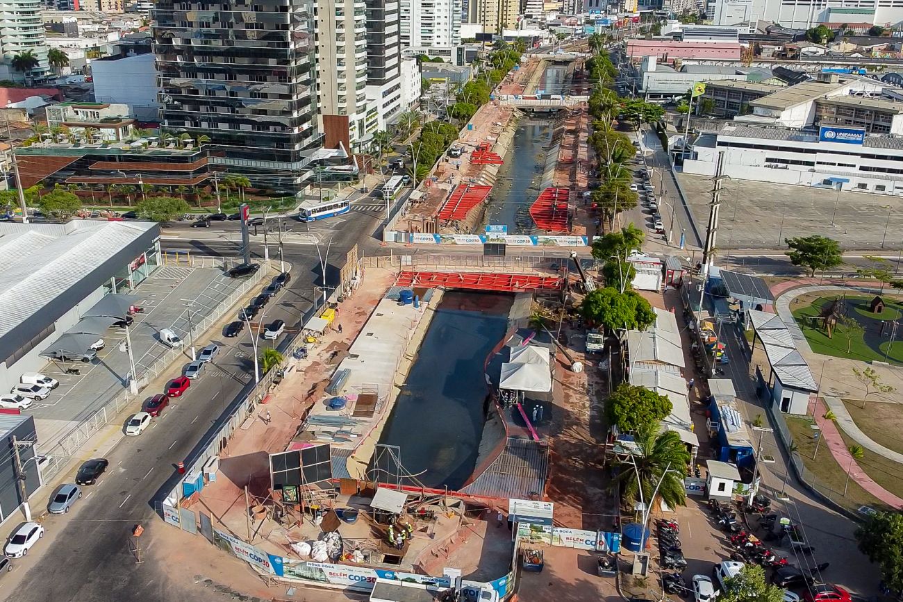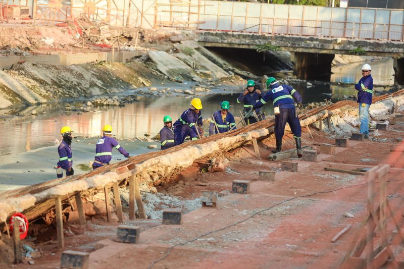 Nova Doca – O projeto da construção do parque linear envolve 1,2 quilômetro de canal, com serviços de drenagem, paisagismo, urbanização e construção de passarelas, além da substituição das comportas para controle de água de maré, a fim de evitar inundações.