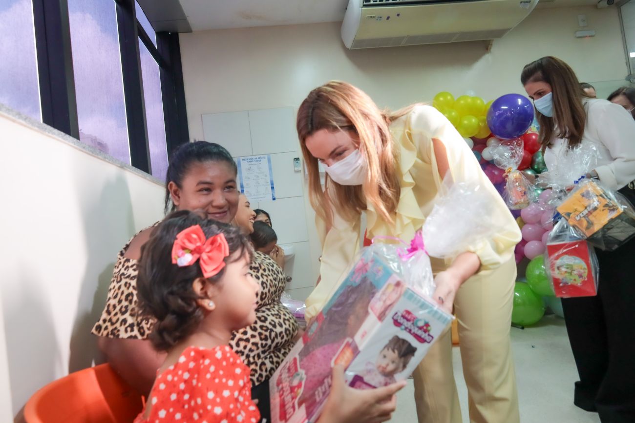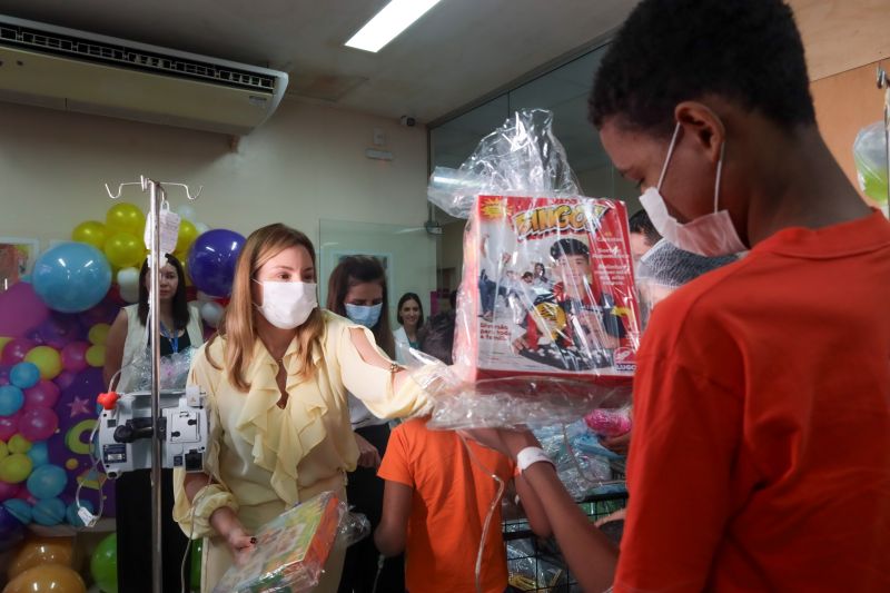 A vice-governadora do Pará, Hana Ghassan, visitou, na manhã desta quarta-feira, 30, pacientes do Hospital Oncológico Infantil Octávio Lobo (Hoiol), em Belém. Acompanhada da secretária de Estado de Saúde Pública (Sespa), Ivete Vaz, a gestora conversou com usuários e acompanhantes nas brinquedotecas da unidade e entregou presentes durante a visita às enfermarias, em ação alusiva ao mês das crianças. Na oportunidade, a vice-governadora ainda realizou a entrega dos kits de higiene e conheceu projetos que humanizam o trabalho desenvolvido na instituição, referência em oncologia pediátrica na região amazônica.