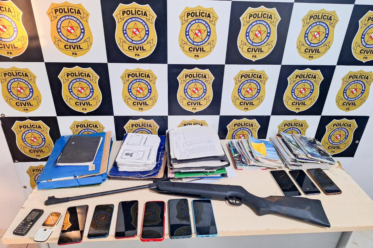 As equipes fizeram buscas em ação deferida pelo Juízo da Vara Criminal da Comarca da Tailândia. No decorrer da operação, foram apreendidos nas residências dos suspeitos, aparelhos celulares, uma arma de fogo calibre 22, documentos e anotações contendo dados de pessoas da região.