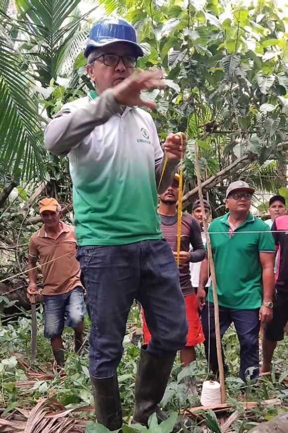 Entre as informações reforçadas pelos especialistas da Emater para os moradores da comunidade Rio Aningal, todos integrantes da Cooperativa Agroextrativista de Afuá (Coop Brasil), foi recomendado a importância da manutenção de espécies nativas variadas junto ao açaí, a exemplo do ingazeiro e da virola, estratégia que ajuda a proteger a saúde do solo. Recém-criada com o apoio da Emater, a Coop Brasil está concluindo seu processo de formalização enquanto cooperativa.