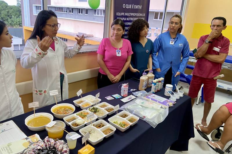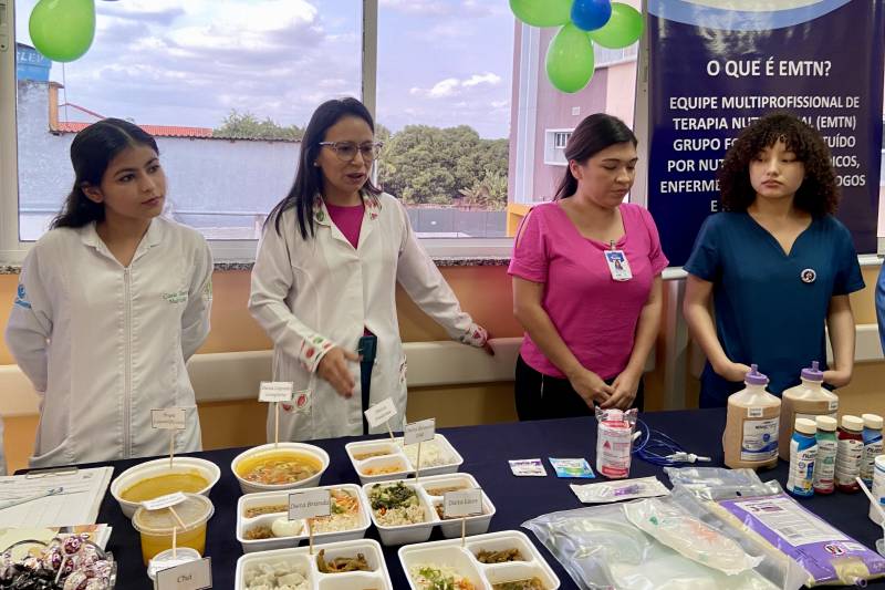 Fonoaudiólogos, nutricionistas, farmacêuticos e enfermeiro apresentaram na Recepção do Ambulatório opções de dietas hospitalares