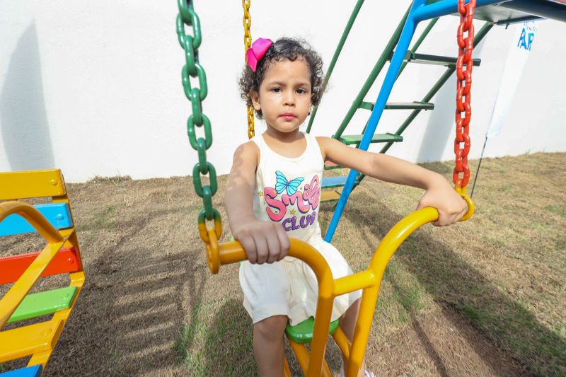 Área para diversão para os alunosJá para a estudante Manuela Maria, do 1º ano do Ensino Fundamental, ver a escola totalmente reconstruída é um incentivo para estudar mais. “Eu achei que a escola está muito legal, novinha para a professora dar aula. Tem parquinho para a gente brincar, ar-condicionado. Gostei muito. Quero estudar muito aqui”, contou.