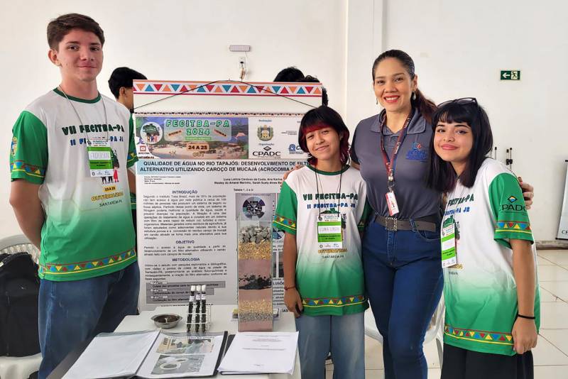 A Escola Estadual de Educação Tecnológica do Pará (EETEPA) Francisco Coimbra Lobato, na região de integração do Baixo Amazonas, em Santarém, oeste paraense, celebra a classificação para a premiação final da Feira Brasileira de Ciências e Engenharia (FEBRACE) com o projeto "Qualidade da Água no Rio Tapajós: Desenvolvimento de Filtro Alternativo Utilizando Caroço de Mucajá". O evento será realizado em março de 2025, na USP em São Paulo.