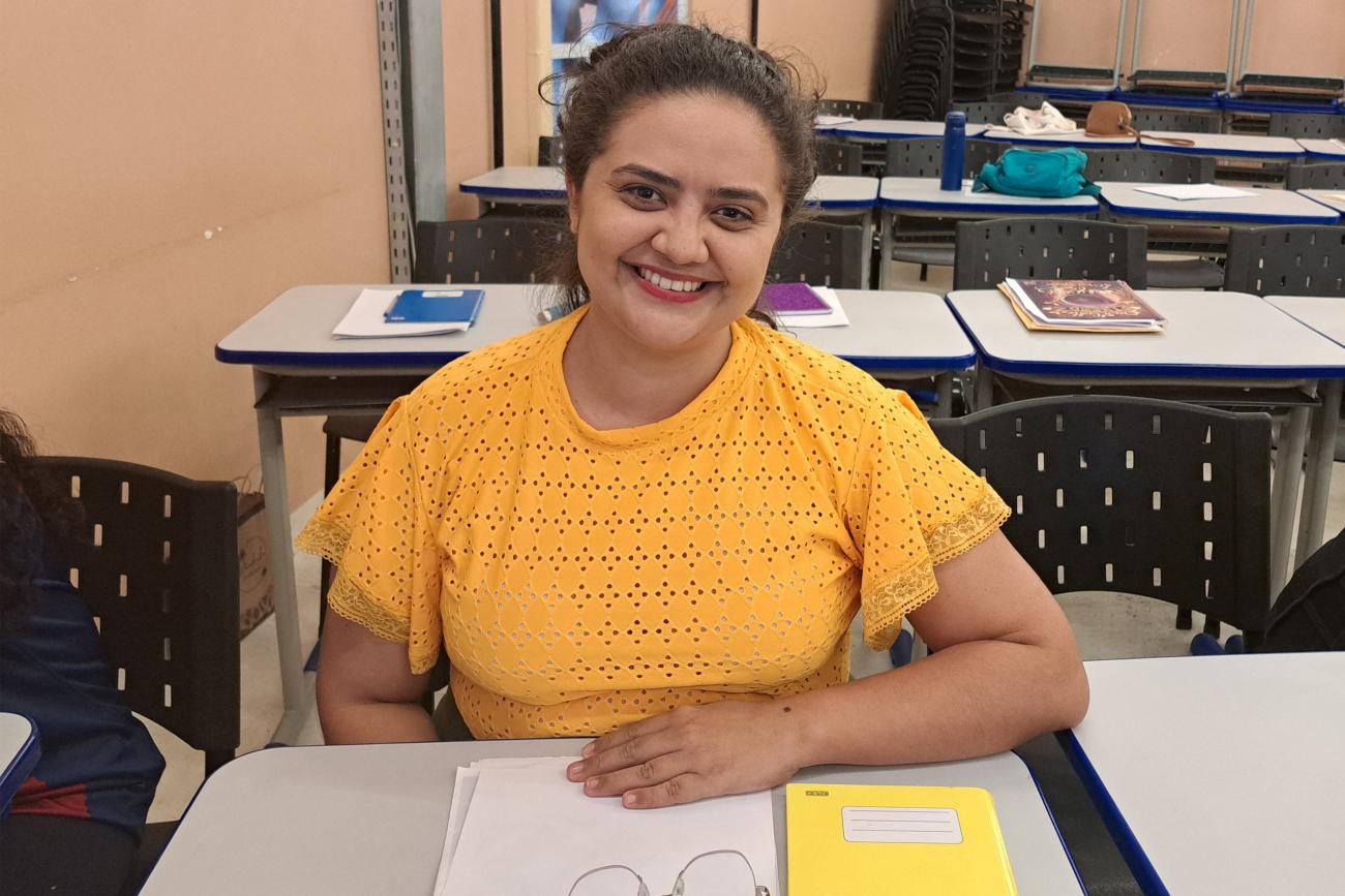 Amanda Letícia Pinheiro.Entre eles, a professora do ensino fundamental, Amanda Letícia Pinheiro, está participando pela primeira vez de um curso na Usina da Paz e avalia a oficina como extremamente proveitosa. "Tenho boas referências dos cursos ofertados nas Usinas e sempre quis participar, mas não estava conseguindo devido ao meu horário de trabalho. Pretendo conciliar tudo que estou aprendendo aqui com a área de pedagogia e, futuramente, atuar na gestão de pessoas, focando na questão humanitária que as empresas valorizam bastante. Desejo me tornar um pedagogo empresarial, capaz de trabalhar nas empresas. O curso abre oportunidades para explorar novos mercados e segmentos, e vejo que isso é muito viável através do que estou aprendendo, pois proporciona uma visão clara do que o mercado exige".