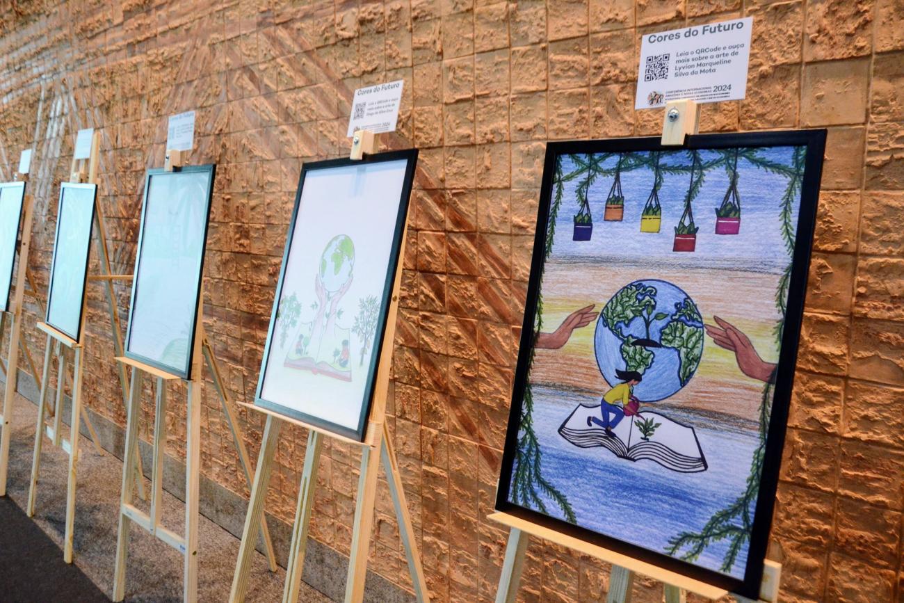 Ao todo, foram expostos 23 desenhos produzidos por estudantes de todo o Pará. As obras estampam as capas dos materiais didáticos do componente curricular inédito no Brasil de Educação Ambiental, Sustentabilidade e Clima, ofertado pela Seduc desde o início do ano letivo de 2024. As artes foram escolhidas no concurso “Cores do Futuro” em 2023 e 2024. Quem esteve presente no evento pôde ver desenhos inspirados em temas como educação ambiental, projeto de vida, sustentabilidade e clima. Além disso, puderam ouvir áudios dos próprios estudantes falando sobre a inspiração para a criação artística. Os desenhos também foram utilizados na identidade visual e em materiais como bolsas e cadernos, entregues aos participantes da programação.