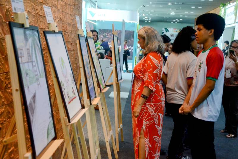 Segundo o coordenador de Educação Ambiental da Seduc, Mauro Tavares, é extremamente importante e oportuno envolver os estudantes estaduais nos debates sobre mudanças climáticas, sustentabilidade e meio ambiente. “Nesse momento em que a gente vive a necessidade de debater, de ter discussões sobre as mudanças climáticas, sobre repensar e, além disso, de colocar em prática essa discussão, ter esse momento, ter essa oportunidade de trazer esses alunos para essa imersão, para esse debate que eu qualifico aqui de alto nível, com pesquisadores, com diversos setores da sociedade que estão diretamente envolvidos com esse processo e você proporcionar isso para os nossos estudantes, de eles terem esse contato, de participarem dessa discussão, de vivenciar esse momento, é incrível. São duas grandes oportunidades: uma é expor esse trabalho belíssimo, que são os desenhos do concurso ‘Cores do Futuro’, um projeto desenvolvido pela Seduc, e também, a gente não pode deixar de falar, que eles estão vindo para cá também com esse papel de protagonistas, ou seja, além de expositores, esses alunos vieram para cá participando desse processo, tanto na exposição, tanto fazendo parte da platéia, mas também sendo alunos repórteres, ou seja, mostrando aí todo o potencial desses nossos jovens da nossa rede estadual”, ponderou.