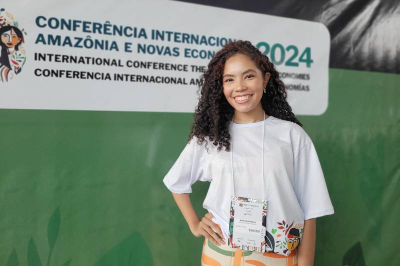Estudantes repórteres - Dez estudantes de cinco escolas estaduais da capital paraense e da da Região Metropolitana de Belém (RMB) atuaram como repórteres durante a conferência. Para eles, a experiência foi enriquecedora, como conta a estudante da 2ª série do Ensino Médio da Escola Estadual Albanízia de Oliveira Lima, em Belém, Ana Elisa Quintela. “Eu achei a experiência super legal, foi muito diferente. A gente conheceu muita gente nova, muitas autoridades também que a gente não esperava conhecer. Então a gente entrevistou, conheceu muito mais sobre o evento, viu como a economia sustentável deve fazer parte do nosso cotidiano aqui na Amazônia, aqui no Pará. E eu achei isso bem legal, foi muito bom eles terem nos convidado para fazer parte disso tudo. Não só a gente que tá como repórter hoje, mas também os outros estudantes das outras escolas que vieram”, disse.