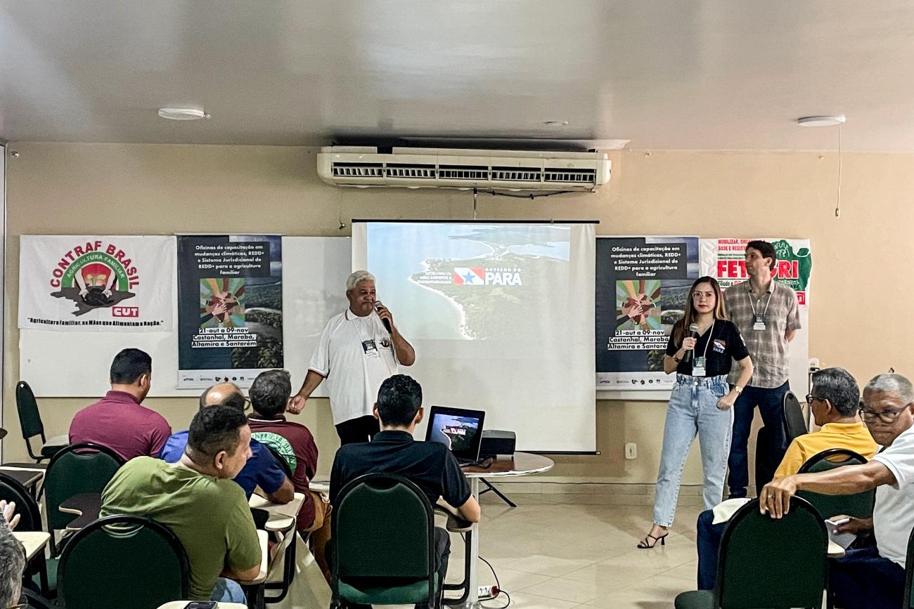 Trabalhadores da agricultura familiar discutem em Santarém o REDD +, para a redução da emissão de gases pela agriculturaO Governo do Estado concluiu na última sexta-feira (8), em Santarém, uma oficina voltada para a capacitação de representantes da agricultura familiar em mudanças climáticas, REDD+ e Sistema Jurisdicional de REDD+ - Redução das Emissões por Desmatamento e Degradação florestal plus (na sigla em inglês). O evento é parte do processo realizado pelo Governo do Pará de construção do Sistema Jurisdicional de REDD+ (SISREDD+ Pará) no estado, as palestras repassam informações e recebem contribuições de agricultores e agricultoras familiares para o estabelecimento deste sistema no Pará. Trata-se de um mecanismo que visa a reduzir as emissões de gases de efeito estufa causadas pelo desmatamento e pela degradação florestal.