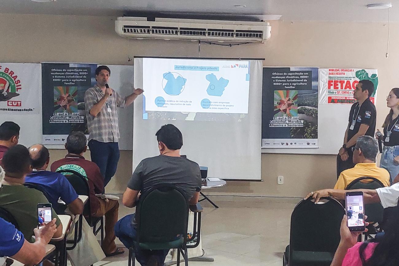 Conclusão - "No dia de hoje concluímos uma importante etapa, iniciada em março deste ano, que envolveu a sensibilização, engajamento e capacitação sobre mudanças climáticas e o Sistema Jurisdicional de REDD+ junto às duas principais federações que representam a agricultura familiar no estado do Pará. Essas quatro oficinas de capacitação que ocorreram em Castanhal, Marabá, Altamira e Santarém tiveram caráter informativo e são preparatórias à etapa seguinte que será o processo de consulta com os representantes da agricultura familiar”, declara Gustavo Furini, pesquisador do IPAM e um dos palestrantes.