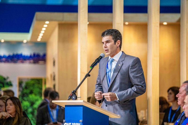 Helder Barbalho durante evento na COP 29 no AzerbaijãoNesta terça-feira (12), durante a Conferência das Nações Unidas sobre Mudanças Climáticas, a COP 29, realizada em Baku, no Azerbaijão, o governador do Pará, Helder Barbalho, participou de um evento no estande da Confederação Nacional da Indústria (CNI), onde abordou a importância da sustentabilidade e das oportunidades de crescimento econômico para o Brasil.