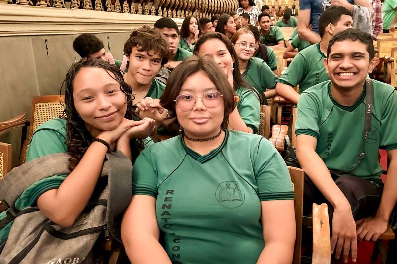 A professora do Ceai, Marta Rocha, agradeceu pela oportunidade de levar seus alunos ao Concerto Didático. "Foi um momento muito especial para as crianças, tanto na parte de conhecimento, ver coisas novas, tanto quanto na parte cultural, poder levar os nossos alunos para terem contato com a música e com esse ambiente magnífico da arte da nossa cidade, o Theatro da Paz".