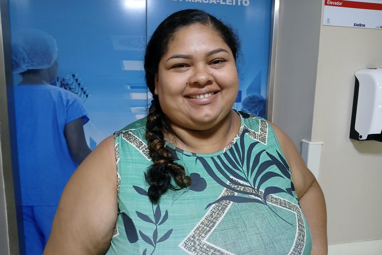 Paciente Carla Sodré se prepara para a cirurgia. "O acompanhamento da equipe faz total diferença no meu tratamento" Aprovação - A paciente Carla Sodré, 29 anos, agricultora da cidade de Irituia, que fica a 172 Km de Belém, está na fase pré-operatória para a cirurgia bariátrica. Ela revela que já pesou 152 kg. “Hoje estou passando com o endocrinologista, e esse acompanhamento da equipe de especialistas está fazendo total diferença no meu tratamento, pois eles se preocupam com a nossa evolução, saúde mental, está sendo muito o atendimento”.