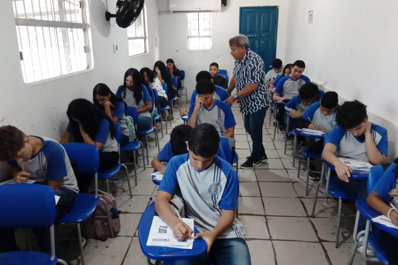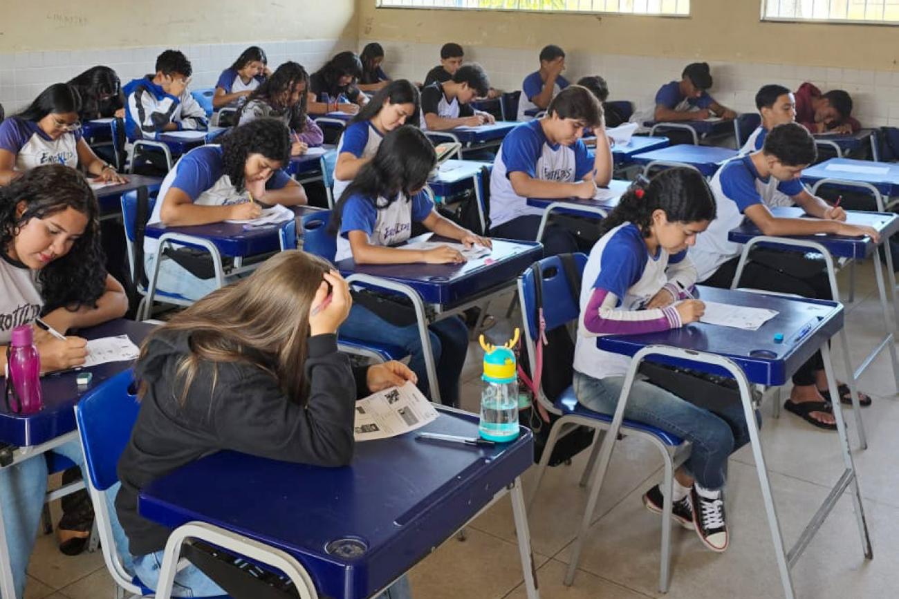 Estudantes de 17 escolas da rede estadual participaram, nesta quarta-feira (13), da primeira etapa da Olimpíada Interna de Português e Matemática Shisima (OPMASHI), promovida pela Diretoria Regional de Ensino de Ananindeua (DRE-05), da Secretaria de Estado de Educação (Seduc). O projeto tem como objetivo impulsionar a aprendizagem dos alunos e, ao mesmo tempo, monitorar a qualidade do ensino por meio de estratégias como essa. A iniciativa visa, ainda, elevar o desempenho dos estudantes, tendo como foco o Sistema de Avaliação da Educação Básica (Saeb) de 2025, como explica a dirigente da Regional, Ana Karolina Bulhões Pinheiro.