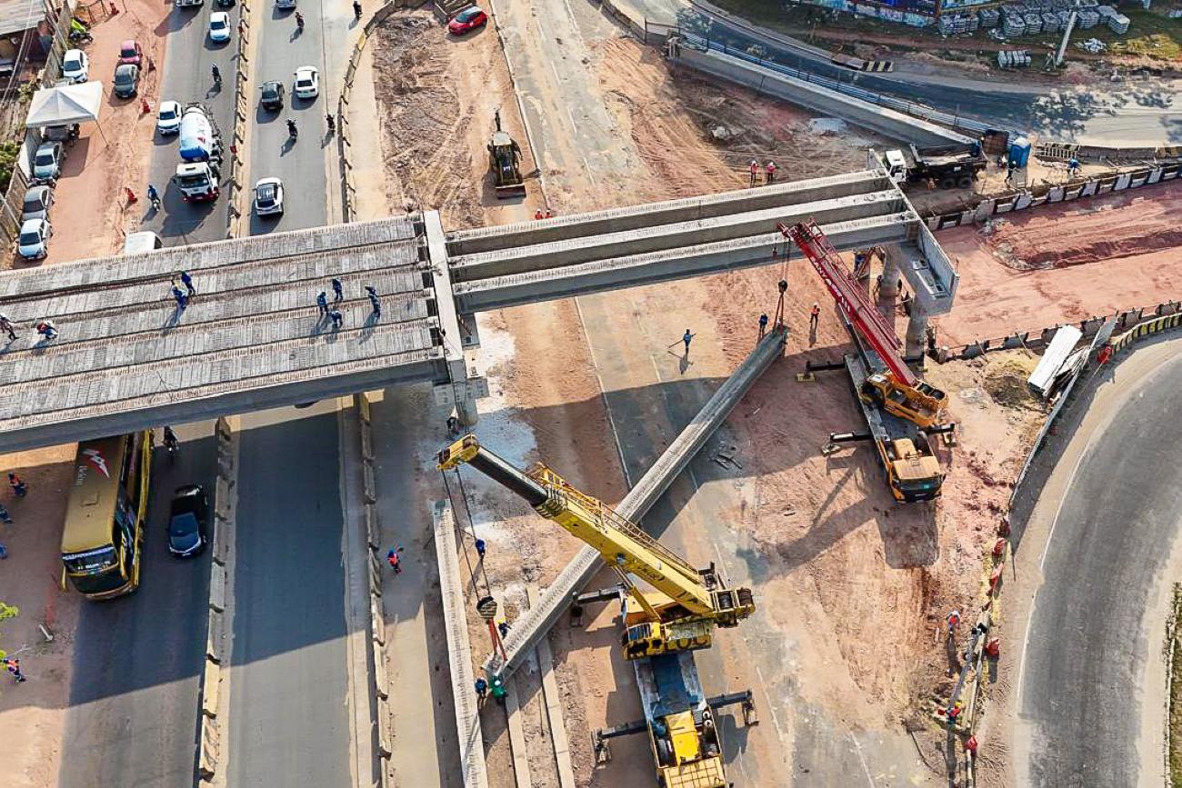 Viaduto da Alça Viária conclui elevação das vigas na BR-316, em Marituba