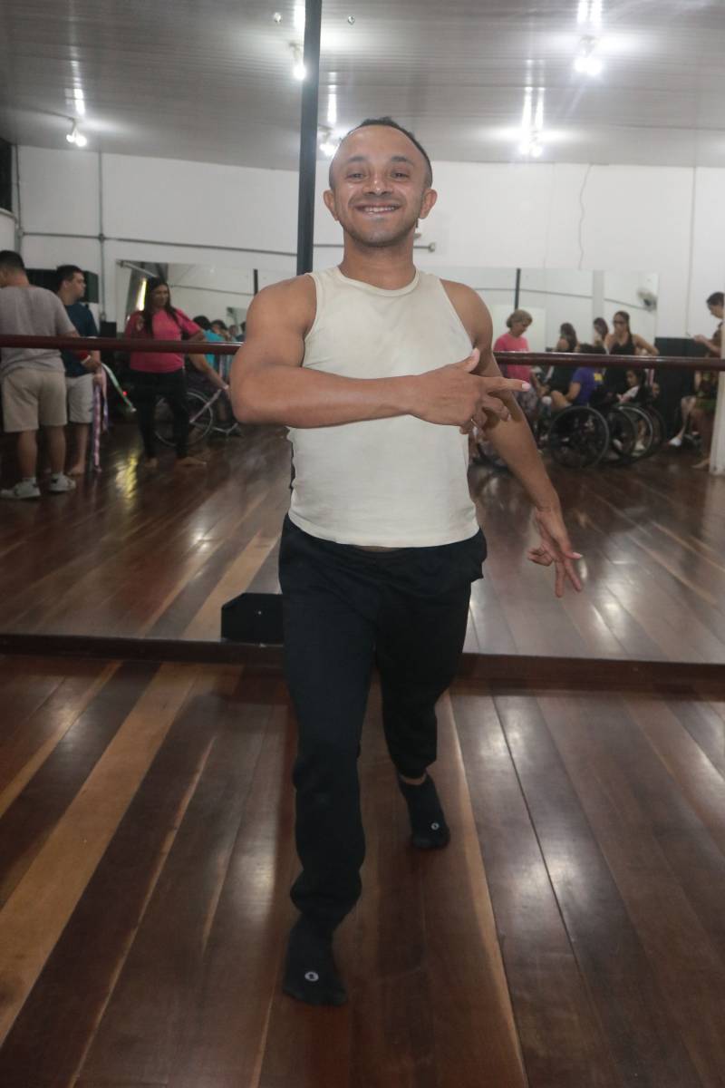 Emília Cunha, professora da atividade explica que “a oficina recebe alunos com todos os tipos de deficiência, usuários de cadeira de rodas, autismo e síndrome de Down, que estão fazendo da dança uma arte, uma terapia”.