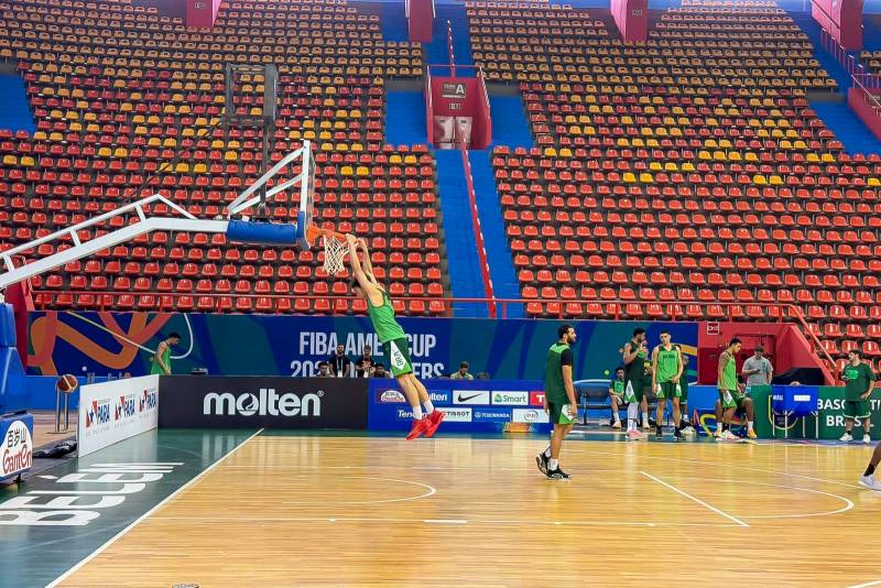 Nesta quarta-feira, 20, a seleção brasileira de basquete masculino realizou seu segundo dia de treinos na arena Guilherme Paraense - Mangueirinho, desta vez com o time completo. Os jogadores Crescenzi, Ruan e Adyel chegaram na terça-feira, 19, em Belém e na quarta-feira, 20. O trio entrou em quadra para treinar com a equipe brasileira na formação completa.