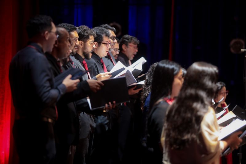 A primeira parte do espetáculo, apenas com o coro, teve a participação do percussionista Williams Tanoeiro e da pianista Ana Maria Adade.