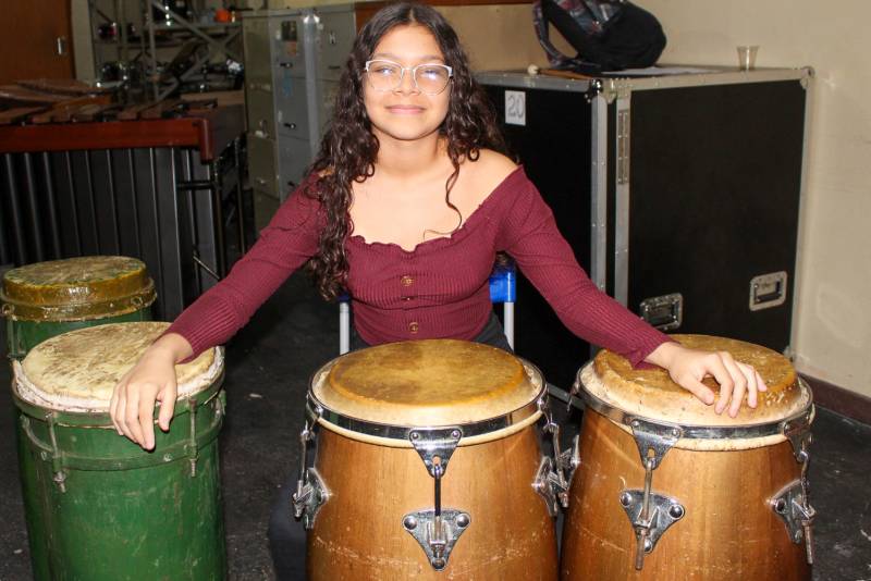 Aluna Maria Clara Pinon, 14 anos: "Quero seguir estudando música e me aperfeiçoar mais ainda", diz ela Curso garante cinco ritmos percussivos diferentes