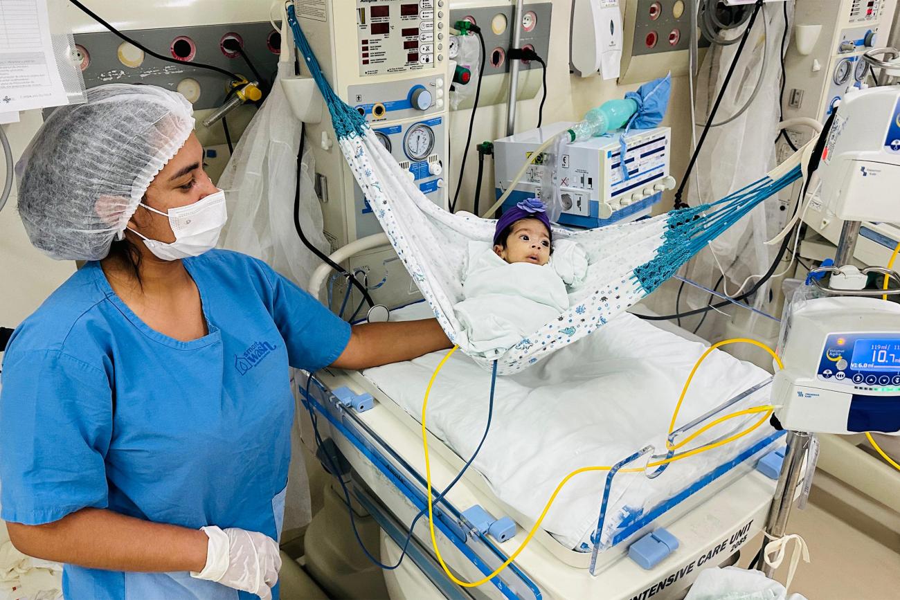 "As redes ajudam a simular o aconchego do útero e promovem o relaxamento. Sempre que possível, alternamos o uso entre a rede e a incubadora para contribuir no desenvolvimento", explicou a enfermeira Alana Isaura Santos, que presta assistência no setor.