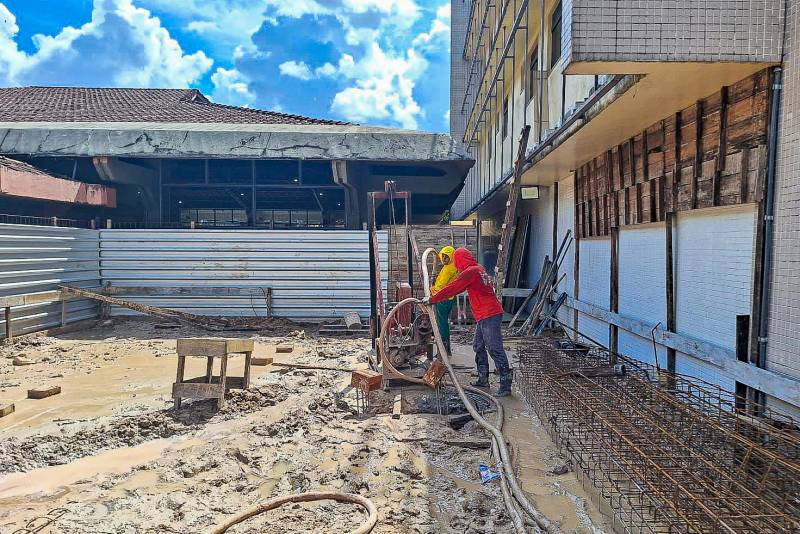 CONSTRUÇÃO - Em Belém, estão sendo ampliadas as dependências da Policlínica Metropolitana, para garantir mais conforto, comodidade, segurança e agilidade na prestação dos serviços. As obras, que iniciaram no dia 10 de agosto de 2021, agregarão na estrutura atual da Poli, com 3 andares e 10 cômodos que servirão de consultórios médicos, salas de procedimentos e exames. A ampliação trata-se de um prédio anexo à unidade, onde antes, era uma área aberta de circulação de pessoas. A entrega será em 2025.