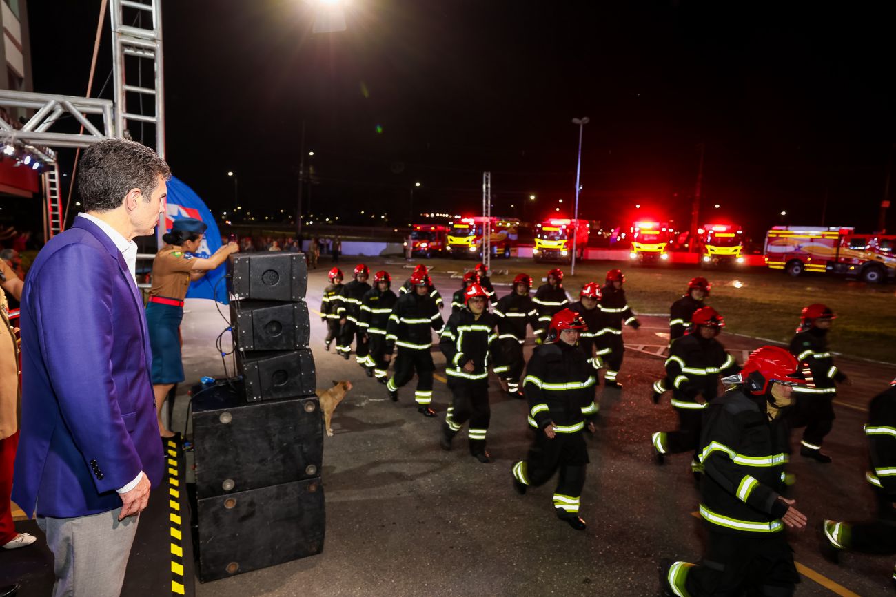 “São mais de R$ 30 milhões investidos para aquisição de veículos de combate à incêndio, cada carro desse, com cinco mil litros, permite que possamos fazer com que as sedes no interior e também na região metropolitana, possam estar com maior infraestrutura, permitindo agilidade no atendimento, agilidade na pronta resposta que o Corpo de Bombeiros deve dar para salvar vidas, combater incêndios, combater crimes ambientais e claro, garantir com que possamos proteger a nossa população”, completou.