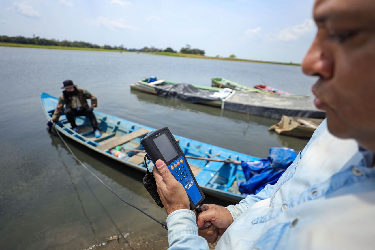 Diagnóstico - Durante a visita, técnicos da Semas realizaram a análise de qualidade da água do Canal do Aramanaí e se depararam com uma água de temperatura elevada e com o peixe que ficou com um cheiro muito forte, sem possibilidade de consumo. Além disso, foi identificada a forte seca que assola o Pará e toda a região amazônica.