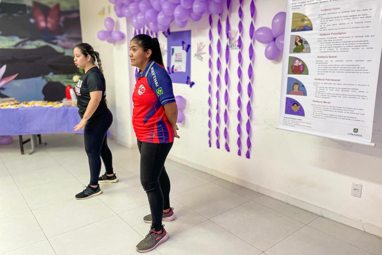 Em parceria com a Federação de Muaythai Tradicional do Estado do Pará (FMTTEPA), foram realizadas aulas de muaythai e defesa pessoal. O objetivo foi ensinar técnicas práticas que ajudam as participantes a se protegerem em situações de risco, além de promover disciplina, autoconfiança, resiliência e socialização.