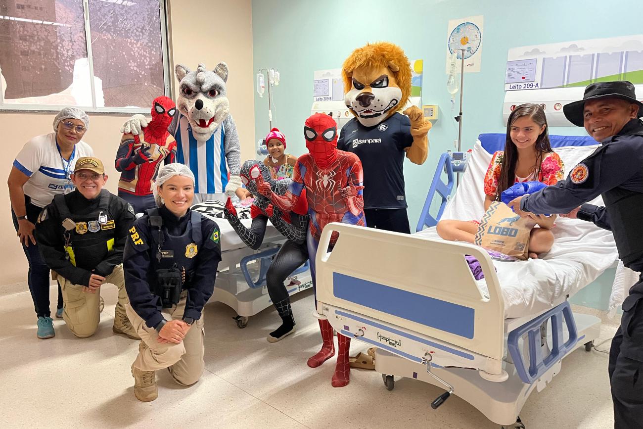 No Oncológico Infantil, ação nacional da Polícia Rodoviária Federal alegra usuários