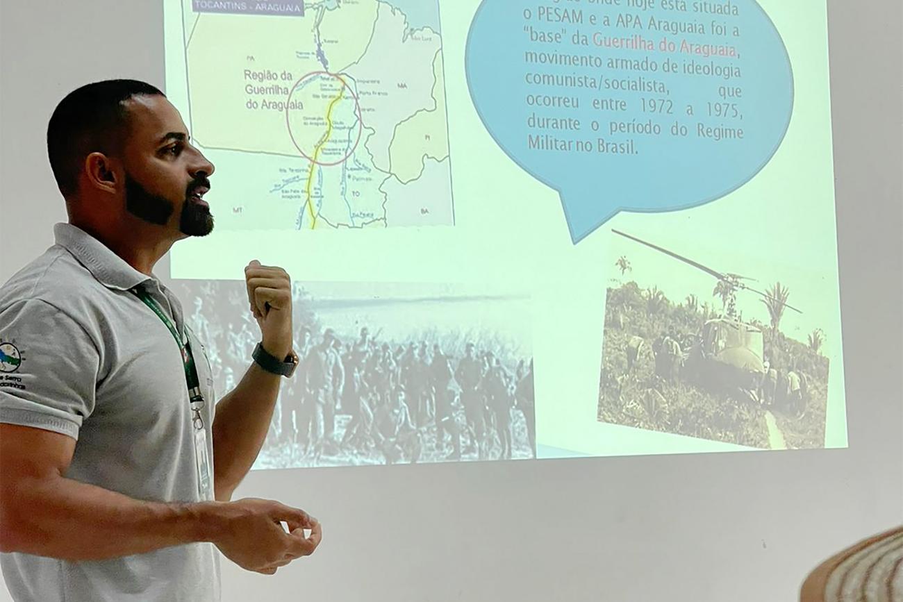 No auditório, os alunos assistiram a uma palestra sobre as UCs estaduais, com destaque para a Área de Proteção Ambiental (APA) Araguaia, local onde eles moram, além do Parque Estadual da Serra dos Martírios/Andorinhas. Foram abordados temas como a relevância ambiental e cultural da área, os projetos desenvolvidos e as atrações naturais, como as trilhas e cachoeiras. “O objetivo é sensibilizar os jovens para a importância da conservação e incentivá-los a se tornarem defensores do meio ambiente em suas comunidades”, explicou o biólogo do Ideflor-Bio, Wagner Bastos.