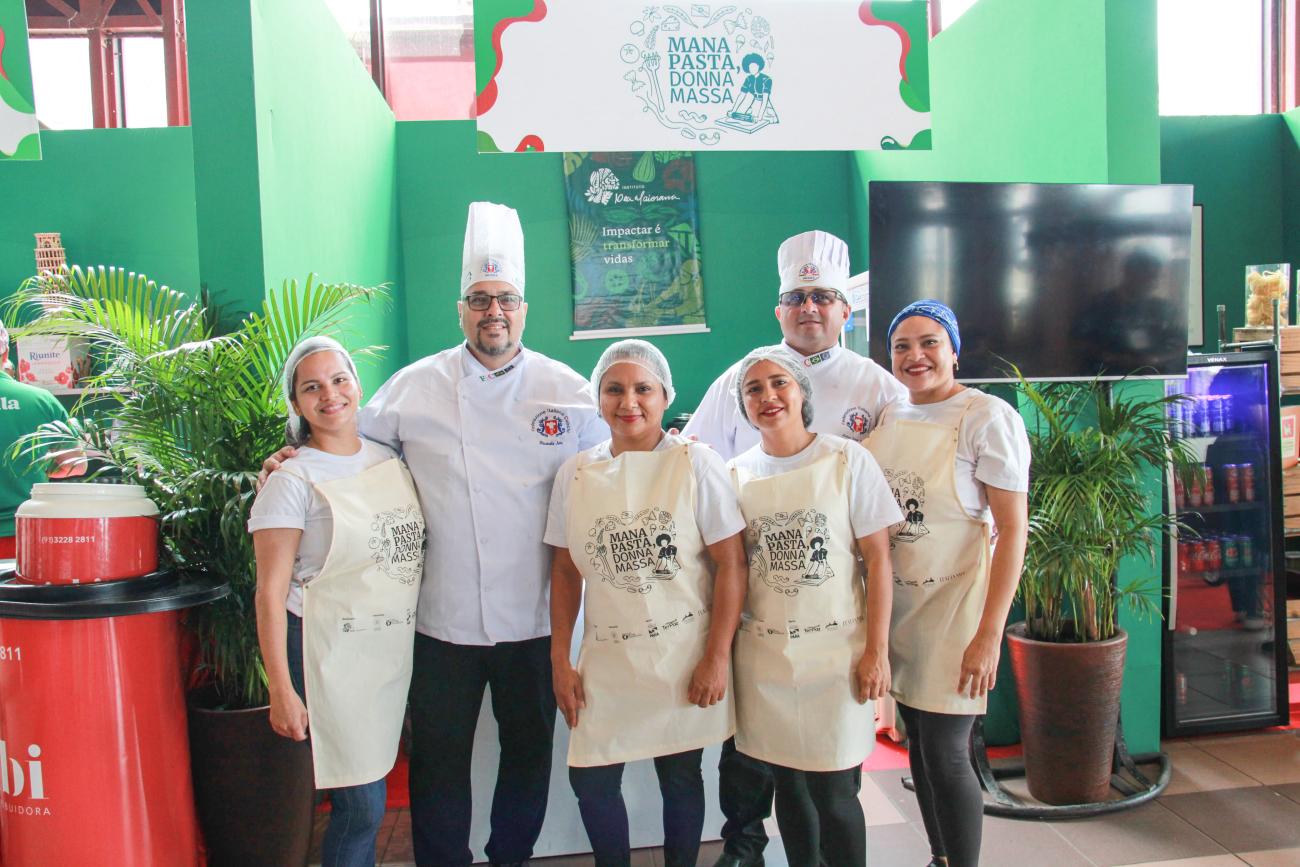 As 12 cozinheiras representantes da UsiPaz na programação foram selecionadas a partir do curso "Mana Pasta, Donna Massa", oferecido em outubro na Usina da Cabanagem, pelo Instituto Dea Maiorana, em parceria com o Governo do Pará, por meio da Secretaria de Estado de Articulação da Cidadania (Seac).