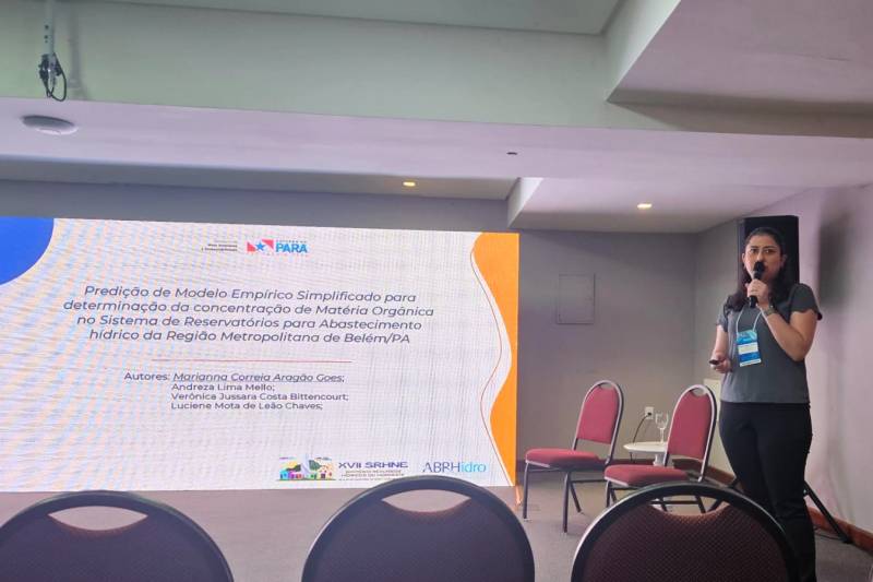Outro trabalho apresentado pela equipe da Semas foi o artigo "Predição de Modelo empírico simplificado para determinação da concentração de matéria orgânica no sistema de reservatórios para abastecimento hídrico da Região Metropolitana de Belém/PA". A partir de dados sobre qualidade da água, de 2010 a 2022, foram obtidos modelos empíricos para determinar a concentração de matéria orgânica no reservatório Bolonha. Os resultados do estudo são importantes para entender a dinâmica da qualidade da água em sistemas de abastecimento, e assim subsidiar ações para garantir a segurança hídrica na RMB.