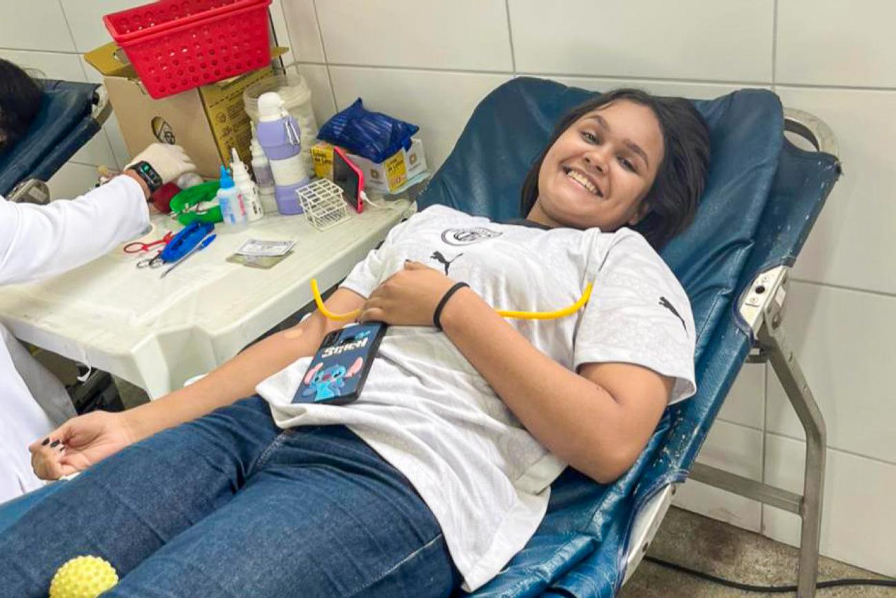 Kauany Silva fez sua primeira doação e estampou a alegria em poder ajudar a salvar vidas de crianças e adultosA Escola Estadual Temístocles de Araújo, localizada no bairro da Marambaia, em Belém, recebeu nesta terça-feira (3) mais uma edição da campanha de doação de sangue promovida pela Fundação Hemopa, em parceria com a Secretaria de Estado de Educação (Seduc). A ação faz parte do Projeto Doador do Futuro, que busca sensibilizar jovens sobre a importância da doação de sangue como um ato solidário e essencial para salvar vidas.