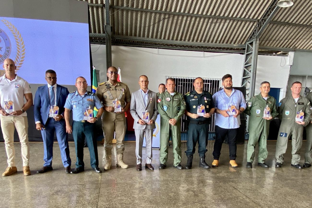 Autoridades presentes à comemoração pelos 20 anos de criação do GraespMeio ambiente - O diretor do Grupamento Aéreo de Segurança Pública, coronel Armando Gonçalves, também destacou o desempenho da unidade no âmbito da Operação Curupira. “Hoje estamos com plena atividade na Operação Curupira, criada pelo Decreto Estadual 2.887, de fevereiro de 2023, que leva duas tripulações completas, em tempo integral, às bases operacionais de São Félix de Xingu, Uruará, Castelo dos Sonhos (distrito de Altamira) e Novo Progresso”, informou.