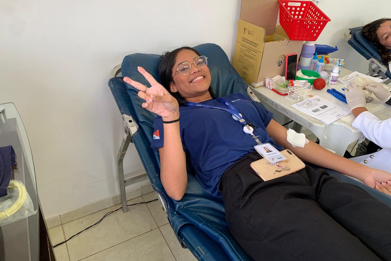 Alice Santos, jovem aprendiz da Equatorial Energia Equatorial Energia, que realizou sua primeira doação. “O que me motivou a doar sangue foi saber que posso ajudar muitas pessoas. O sentimento de estar doando é muito emocionante, né? Mesmo sendo minha primeira vez, está tudo tranquilo. Estou muito feliz por fazer parte disso”, contou.