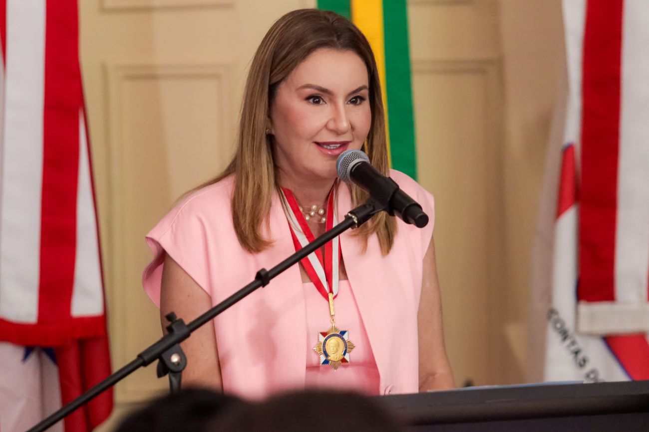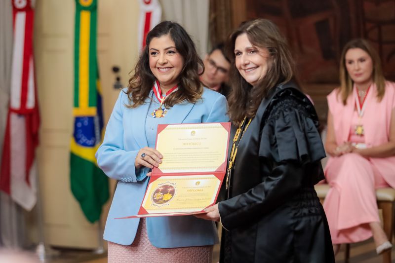 Nesta quarta-feira (4), a vice-governadora recebeu a medalha Serzedello Corrêa concedida pelo Tribunal de Contas do Estado do Pará. A cerimônia foi realizada no Palácio Antônio Lemos, em Belém, e foi entregue a 31 autoridades e personalidades, entre elas o Secretário da Fazenda do Pará, René Souza, o Comandante-Geral da Polícia Militar, Coronel Dilson Junior, o Comandante-Geral do Corpo de Bombeiros, Coronel Jayme Benjó, e o Secretário de Segurança Pública, Ualame Machado.