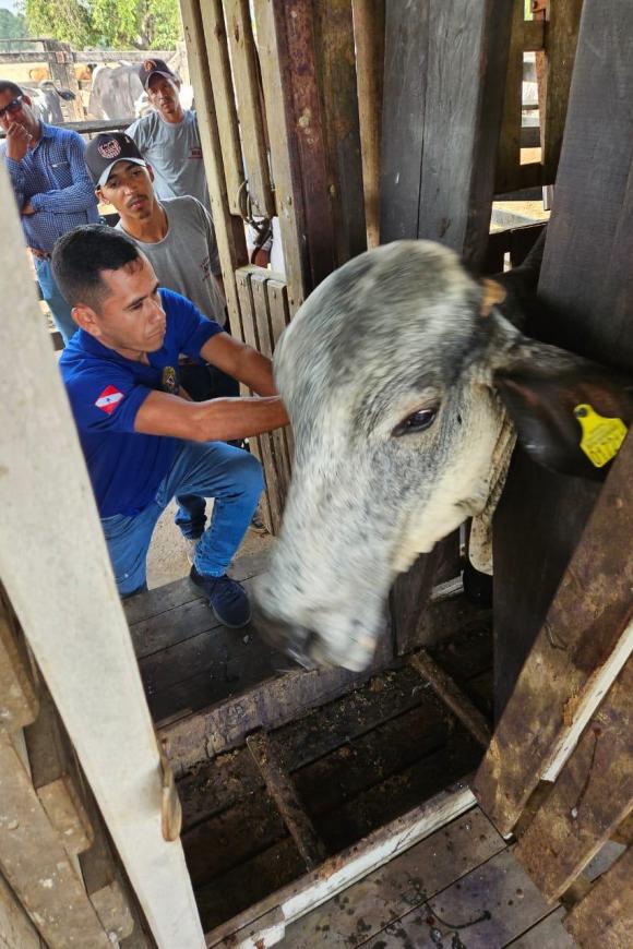 Operador da rastreabilidade identificando o animal O diretor de Defesa e Inspeção Animal, Josino Santos, explicou as diretrizes do programa, que tem a rastreabilidade como um dos pilares. “A identificação individual do rebanho bovino e bubalino será feita através do Sistema de Rastreabilidade Bovídea do Pará (SRBIPA) que está sendo executada pela Adepará. O produtor vai declarar essas informações do seu rebanho identificado junto ao sistema. Todo o rebanho deverá ser identificado. Então, a nossa meta é atingir 100% de identificação individual dos animais transportados até dezembro de 2025” disse.