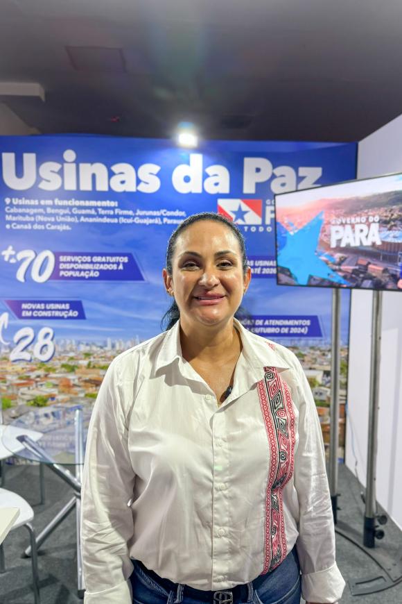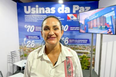 Alessandra Amaral: mostrando ao País os serviços oferecidos pelas UsiPaz Política pública - Para a secretária-adjunta de Articulação da Cidadania, Alessandra Amaral, é muito importante que o Brasil possa conhecer o trabalho eficiente realizado nas Usinas. “Ficamos muito felizes de estarmos participando dessa programação, e com a sensação de que estamos no caminho certo. Aqui estamos mostrando para o País o que o Pará tem promovido em políticas públicas e desenvolvimento para as comunidades, além dos programas e serviços disponibilizados nas Usinas da Paz”, informou a gestora.