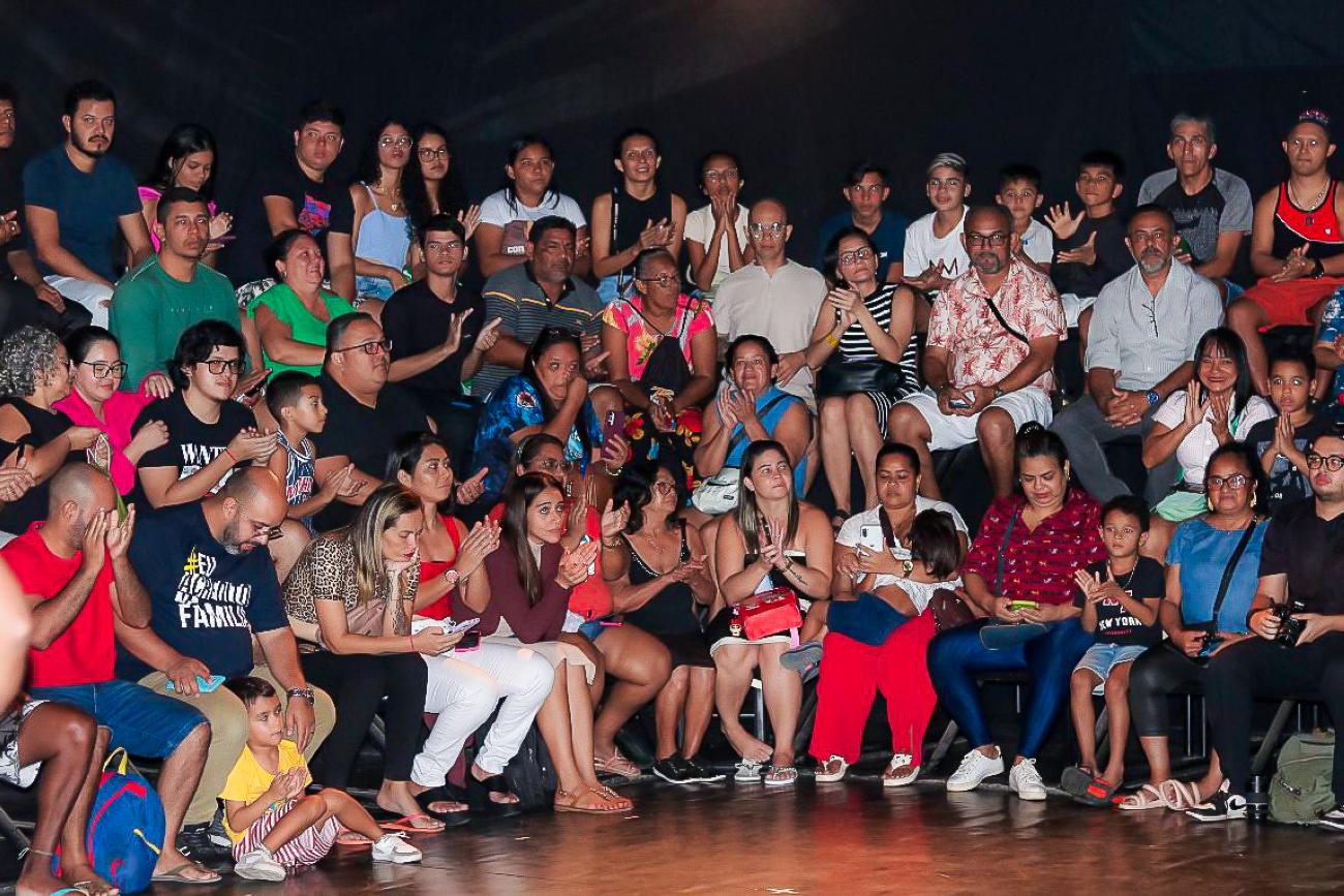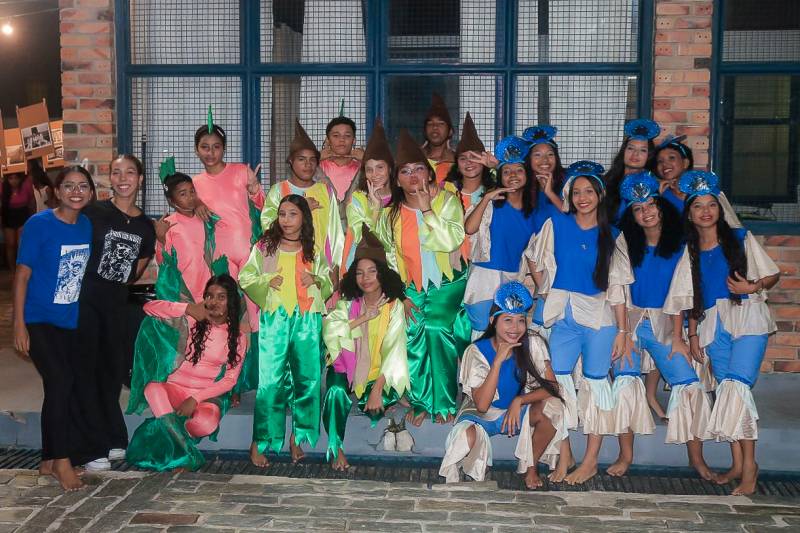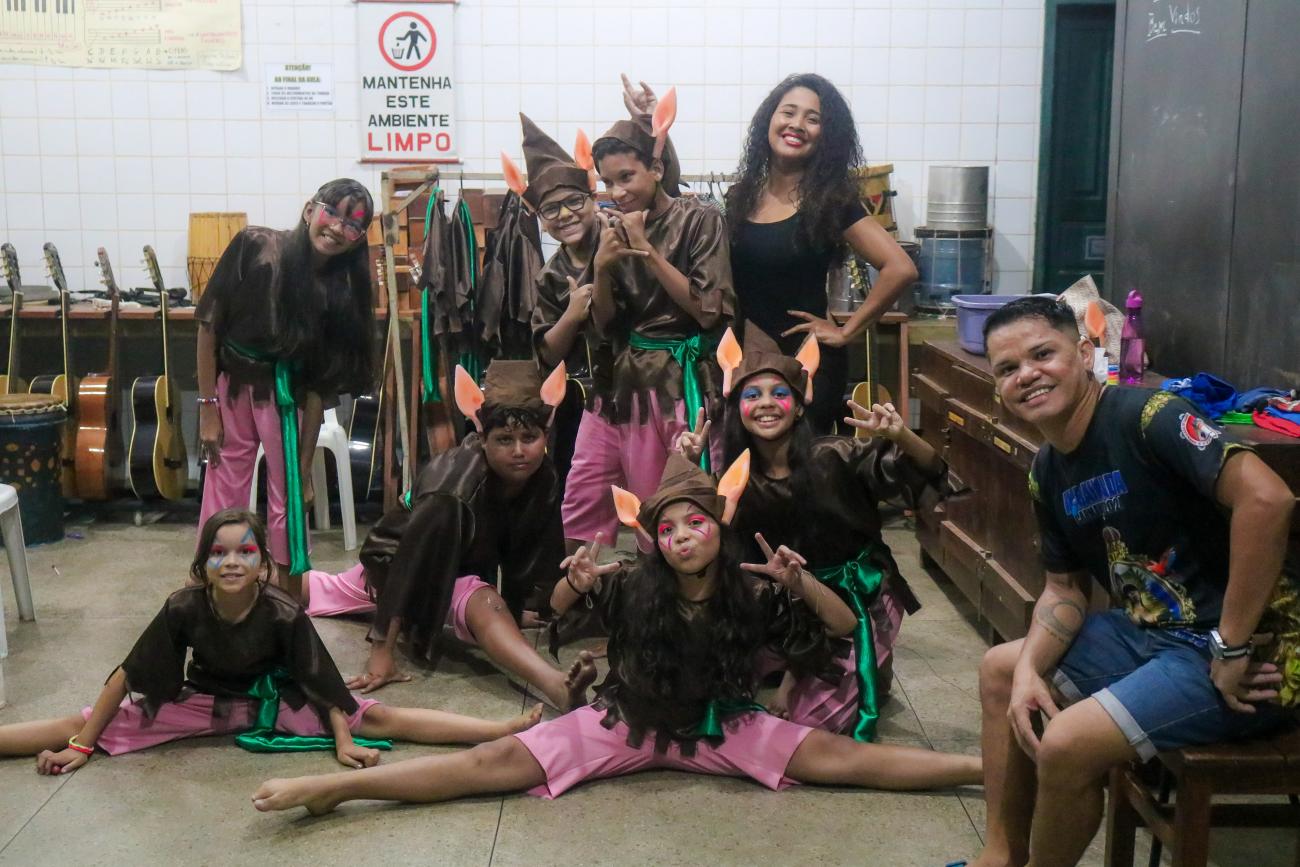 A primeira apresentação do Auto de Natal das crias do Curro Velho lotou o teatro do núcleo de oficinas localizado no bairro do Telégrafo, em Belém, na noite desta sexta-feira, 6. Com o espetáculo teatral ‘O Brilho Verde do Natal’, que aborda a temática do meio-ambiente, a encenação encantou crianças, jovens e adultos. A peça voltará a ser encenada neste sábado, 7, e domingo, 8, a partir das 19h30. A entrada é gratuita.