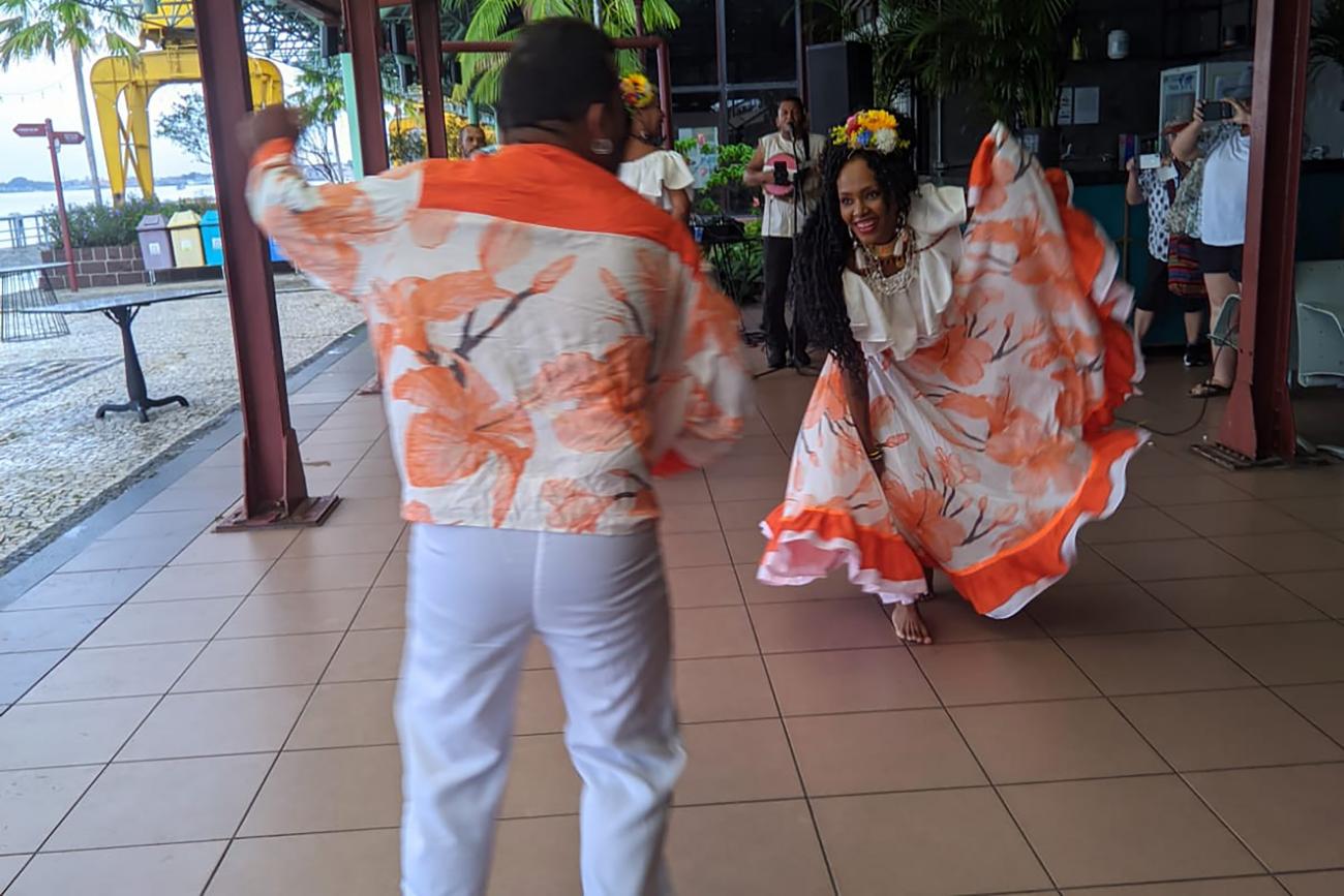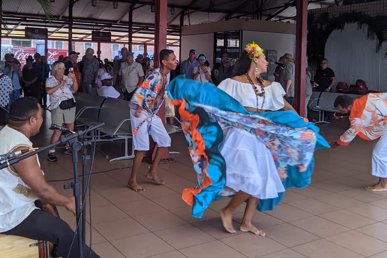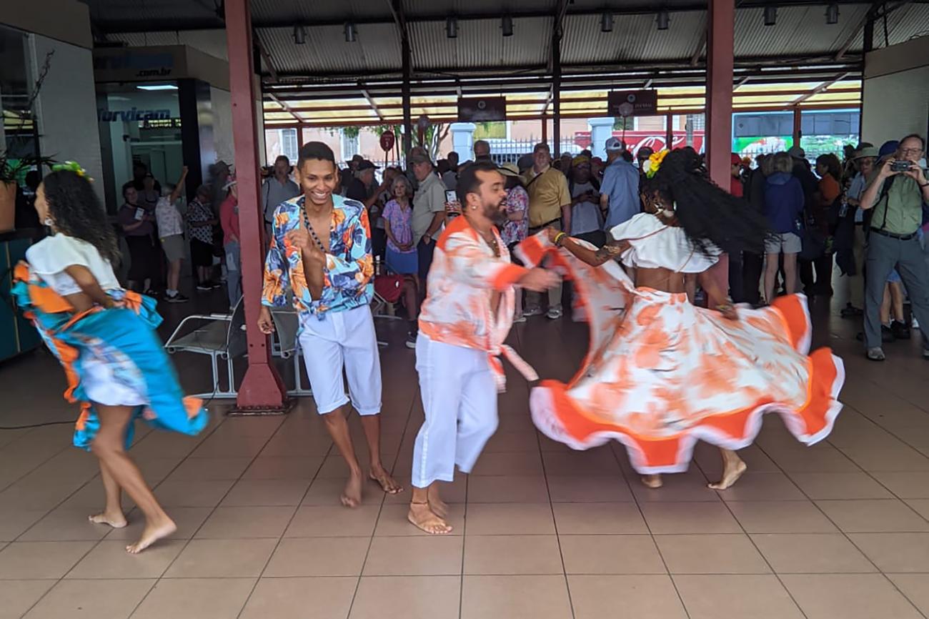 Mais um navio da temporada de cruzeiros 2024-2025 aportou, neste sábado (7), na Estação das Docas, um dos principais cartões postais de Belém. O receptivo de boas-vindas aos 600 cruzeiristas foi promovido pelo governo do Estado, por meio da Secretaria de Estado de Turismo (Setur) e OS Pará 2000, que administra o espaço, ao som do ritmo paraense Carimbó.