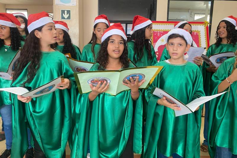 Coral de alunos alegrou os usuários com músicas natalinas"A parceria entre as instituições tem sido fundamental para proporcionar momentos de conforto aos nossos pacientes, especialmente às crianças e aos recém-nascidos. A contribuição da escola, com a doação de brinquedos e kits de higiene, fortalece ainda mais nossa missão de humanizar o atendimento e melhorar a experiência dos nossos usuários atendidos", afirmou o diretor Executivo do HGT, Eduardo Pereira, agradecendo pela continuidade da colaboração.
