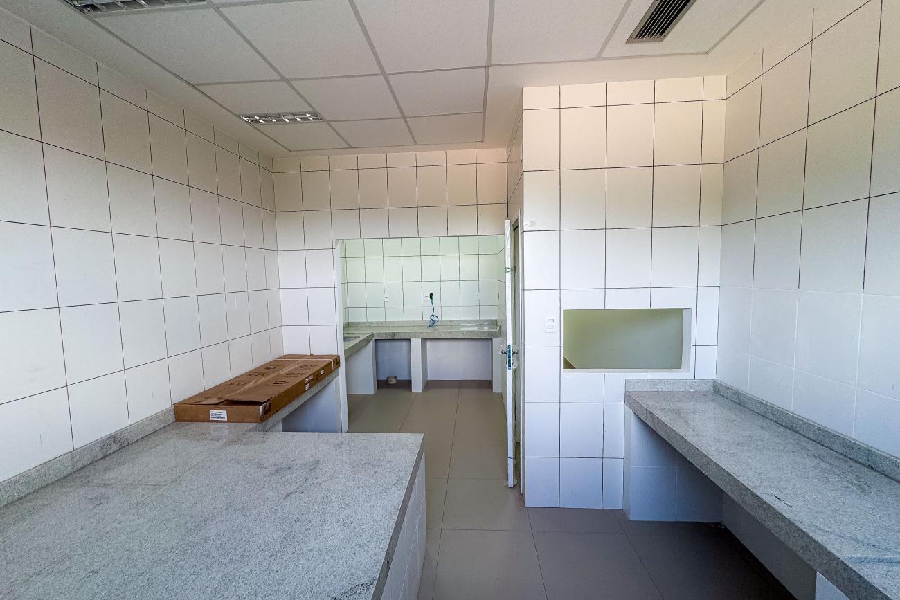 Os trabalhos estão na fase de acabamento, com a pavimentação e drenagem de estacionamento; fechamento de muros e grades; iluminação e pintura; instalação de quadrilhas e louças; e climatização.