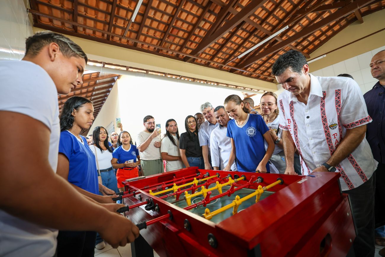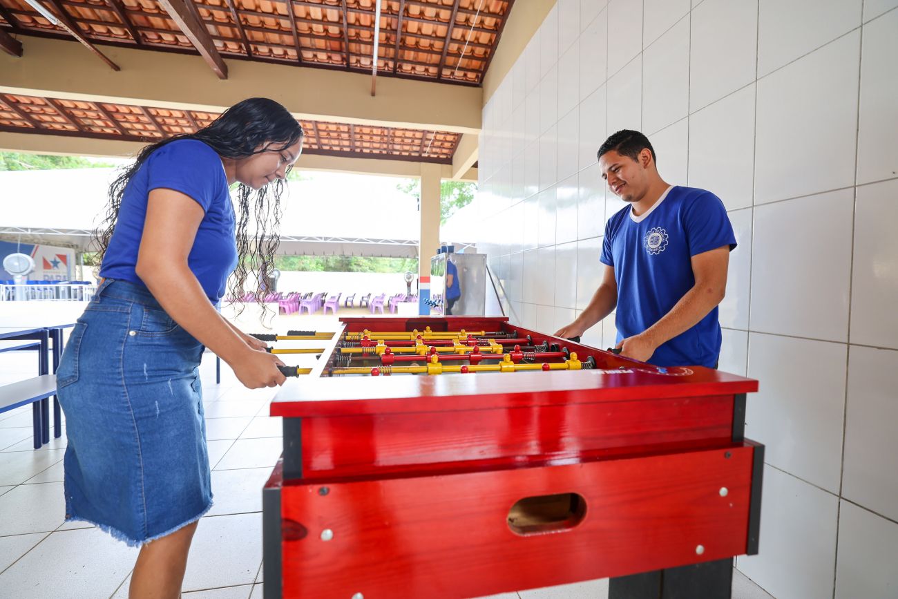 A nova cozinha da unidade de ensino de tempo integralLucas Andrade de Lima, 17 anos, aluno do 2º ano, também ressaltou a importância da reconstrução da unidade. “É uma grande satisfação estar aqui nessa escola. Ela é climatizada, tem um espaço bem legal pra gente poder descansar, ter uma aula bem legal. Os professores são ótimos, sempre respeitosos, bem competentes. Eu moro aqui há cinco anos apenas. Logo no início, eu não tinha conhecimento de como era a escola. Aqui era só mata. E agora é uma grande satisfação ver a escola reinaugurada, bonita. É a minha segunda casa. Eu entro a partir das 7h30 e saio às 16h30. E é um horário ótimo, porque eu posso conviver com meus colegas e professores e ter ótimas aulas”, disse o estudante.