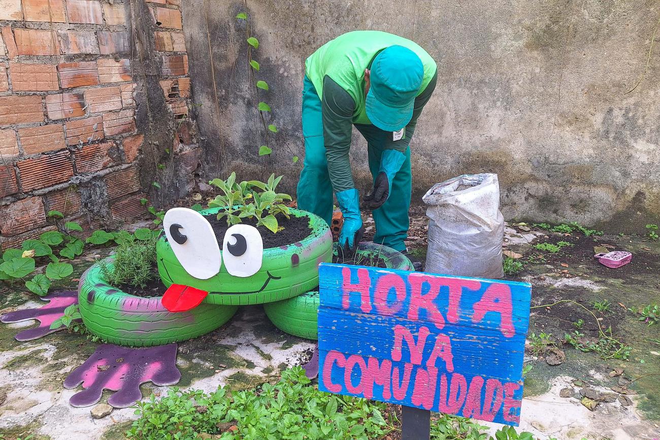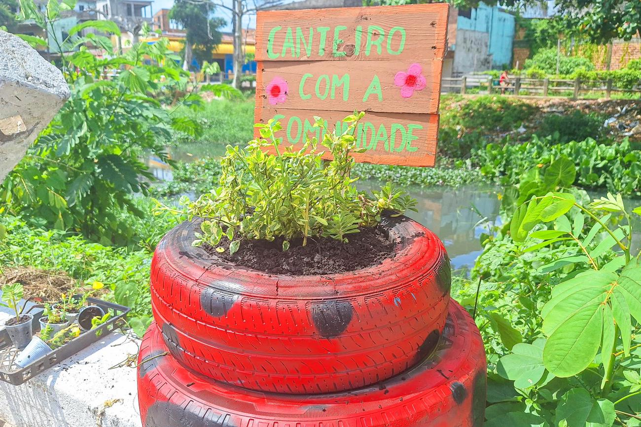 Durante a ação, foram realizadas manutenções nas hortas criadas nos quintais de moradores contemplados em edições anteriores do projeto. Além disso, os canteiros instalados em frentes às residências e às margens de um canal que corta a comunidade também foram contemplados com cuidados, como o uso criativo de pneus reutilizados, que servem como recipientes para as mudas. Os pneus utilizados no canteiro foram previamente personalizados na Oficina de Artes Visuais do Centro.
