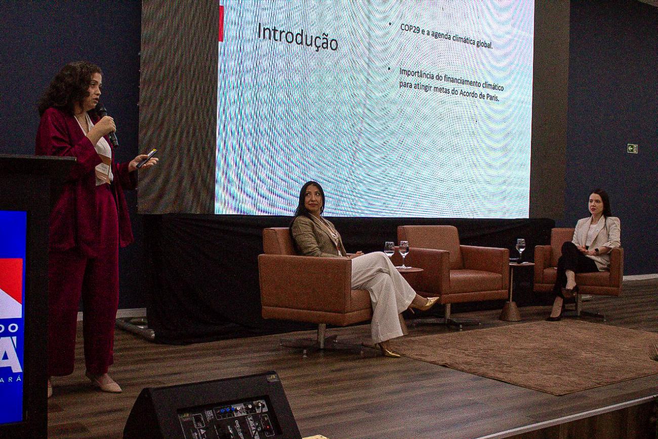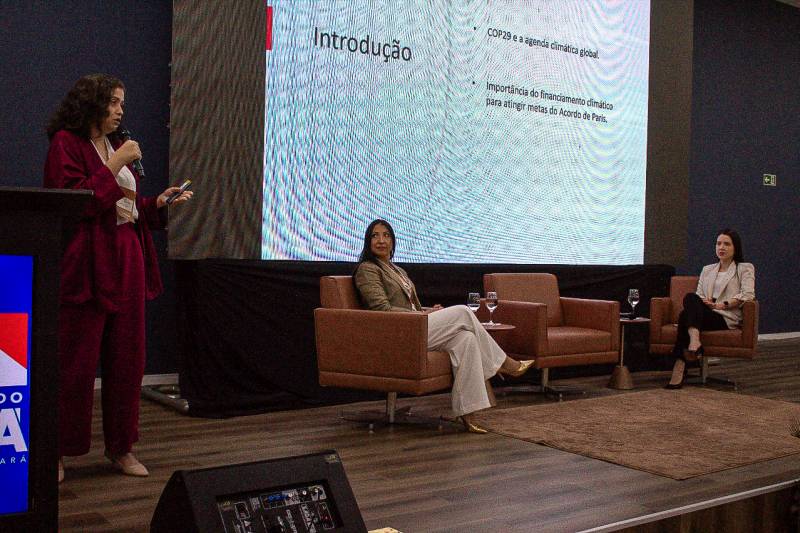 O painel foi mediado pela secretária adjunta de Gestão de Recursos Hídricos e Clima, Renata Nobre, com a participação da professora e pesquisadora da Universidade Federal do Pará (UFPA), Lise Tupiassu, e da diretora de Políticas Públicas e engajamento da La Clima, Caroline Rocha. Elas palestraram sobre as questões da natureza, como os sistemas alimentares, que podem ser um legado político para Belém, e o New Collective Quantified Goal on Climate Finance (NCQG), a nova meta de financiamento global para substituir os 100 bilhões de dólares anuais que eram meta do Acordo de Paris.