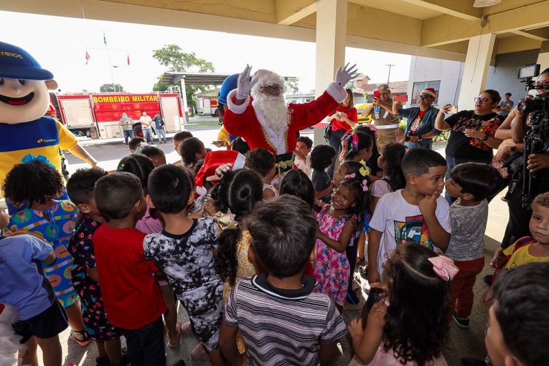 As crianças que estiveram no quartel vibraram quando o Papai Noel chegou em cima do caminhão do Corpo de Bombeiros com os mascotes dos Correios. Participaram do momento natalino alunos do Centro de Referência em Educação Infantil (CREI) Essência Anani, escola localizada no Distrito Industrial, em Ananindeua. Muitos vivem em situação de vulnerabilidade social, por isso, o momento foi tão significativo para meninos e meninas e os professores da instituição.