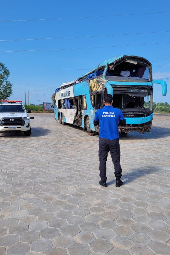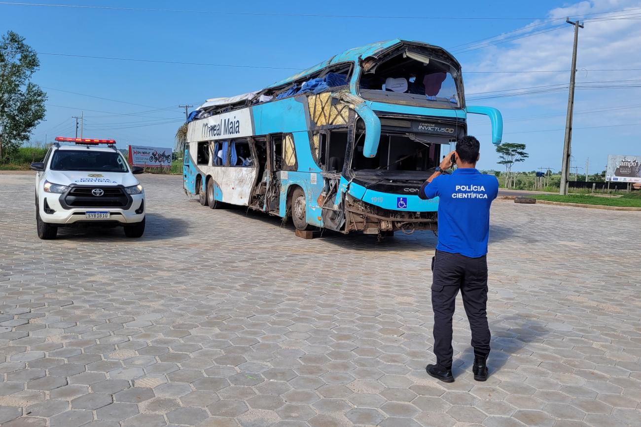 Polícia Científica pericia ônibus envolvido em acidente em Xinguara, sudeste do Pará