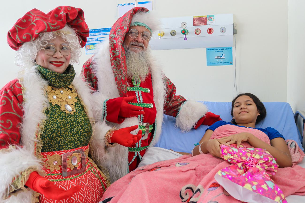 A chegada do Papai e da Mamãe Noel foi embalada por canções natalinas apresentadas pelo Coral Saúde e Vida da Santa Casa e marcou a celebração do Natal no setor de pediatria da instituição. Realizado por meio da parceria entre Fundação Santa Casa de Misericórdia do Pará (FSCMPA) e Secretaria de Estado de Educação do Pará (SEDUC), este ano a inovação foi por conta da campanha "Adote uma Carta", que levou os servidores do hospital a adotarem uma cartinha, garantindo o presente de Natal a mais de 150 crianças.