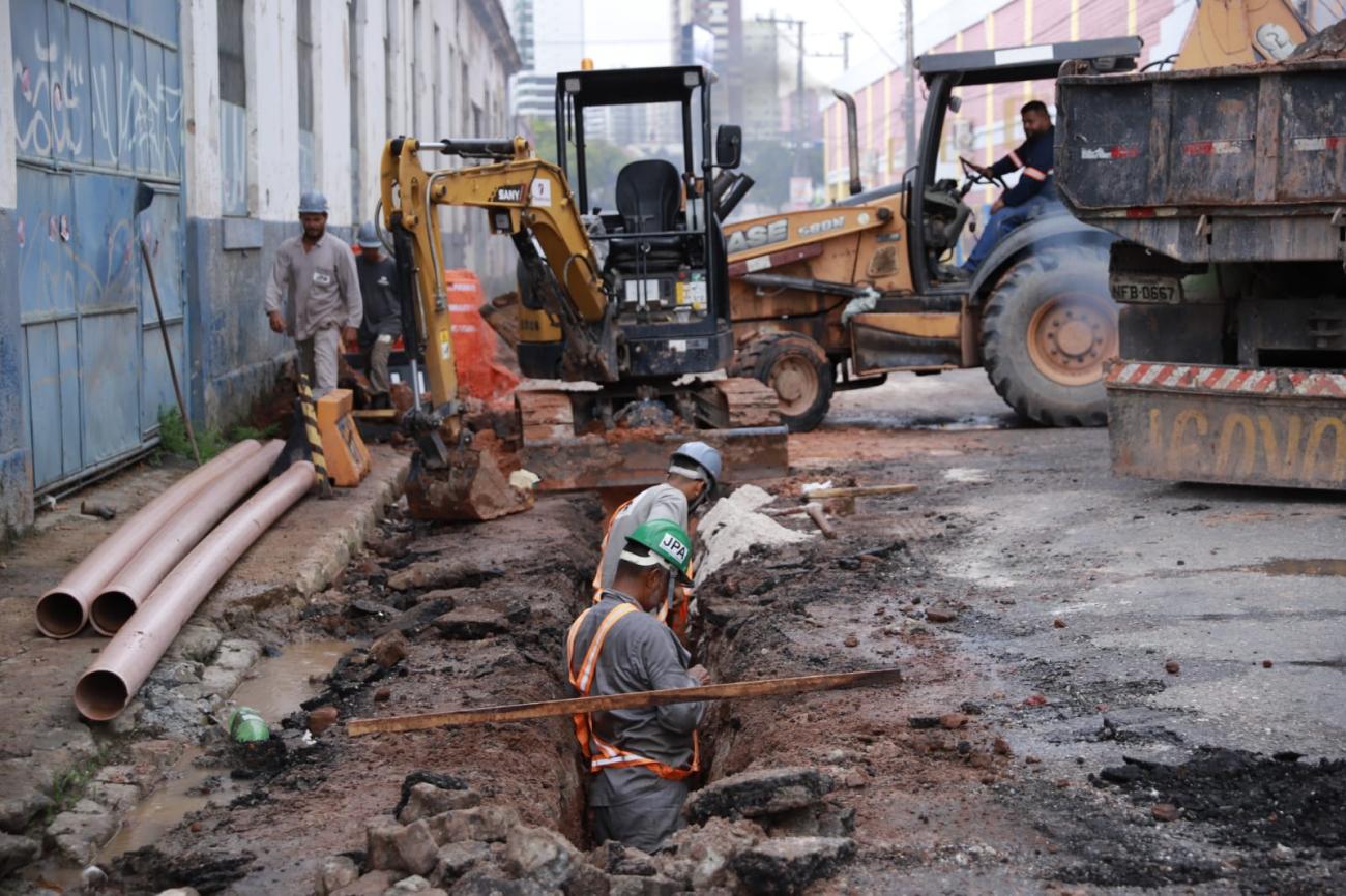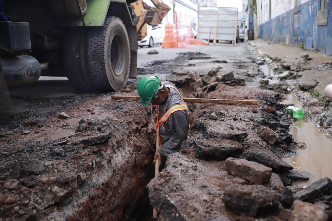 Trânsito na Rua Bernal do Couto, em Belém, tem trecho alterado para avanço de obra de saneamento