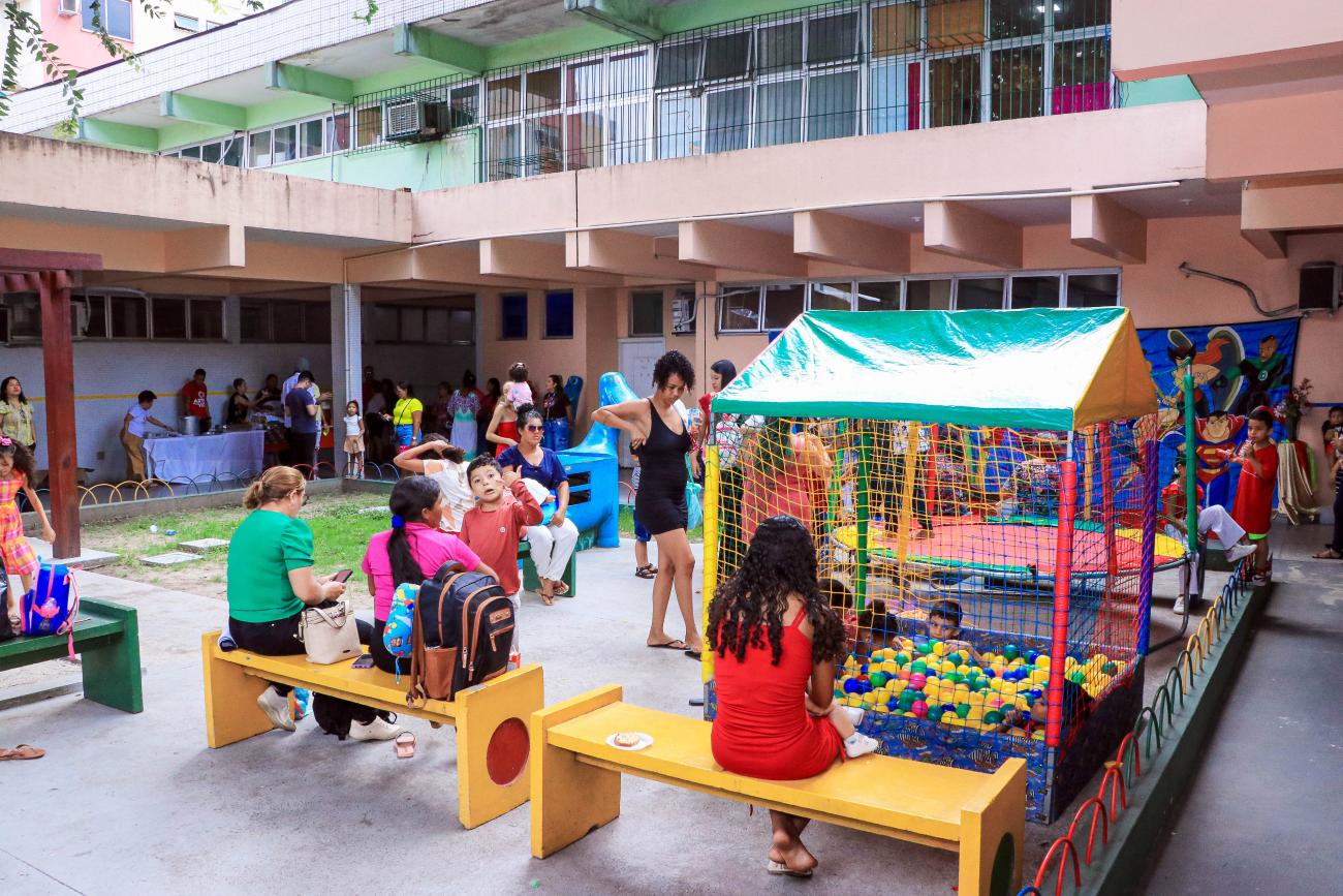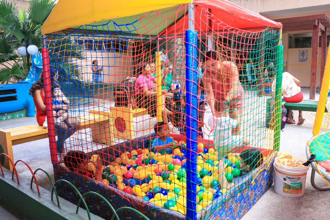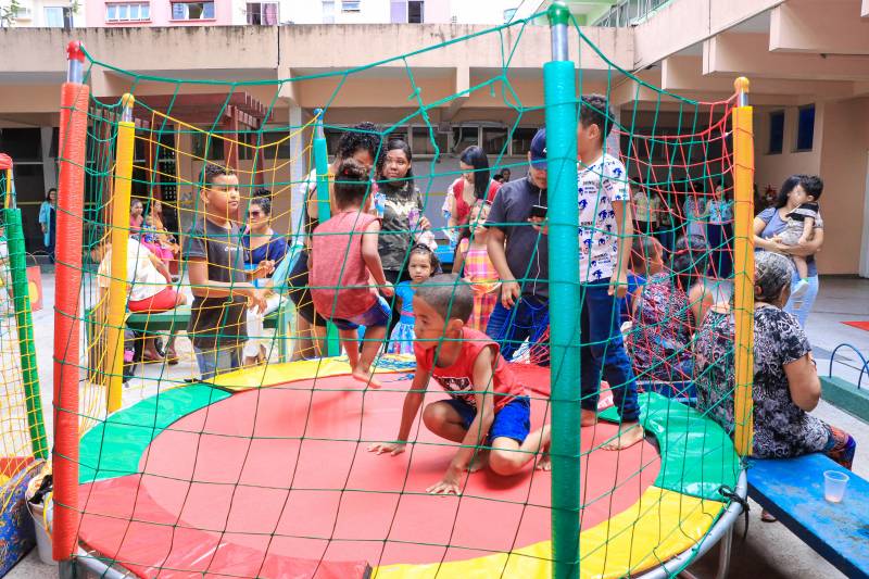 A Unidade de Referência Materno-Infantil e Adolescente (Uremia) promoveu, nesta terça-feira, 17, uma celebração especial de Natal voltada para crianças de todos os programas da Uremia, especialmente as que convivem ou são expostas ao HIV. A programação incluiu contação de histórias, presença do Papai Noel, entrega de presentes, lanches e brincadeiras com brinquedos como pula-pula e piscina de bolinhas.
