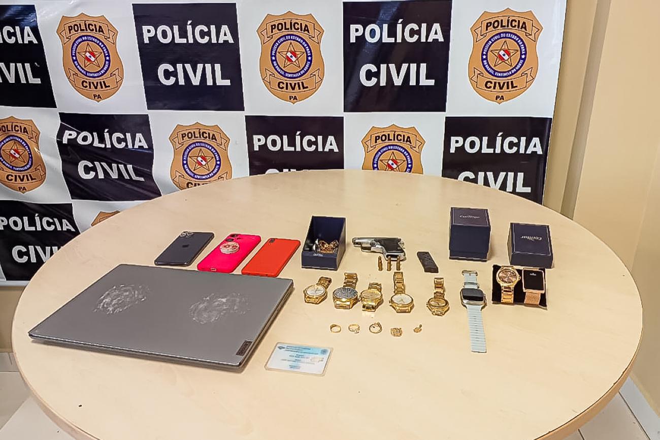 "Durante a ação, o suspeito foi encontrado com uma pistola, munições, joias, relógios, celulares e outros objetos, resultando em cerca de meio milhão de reais em prejuízos totais. Ele foi conduzido à delegacia e as investigações continuam para localizar outros envolvidos." acrescenta o superintendente regional do Baixo Tocantins, delegado Mhoab Khayan